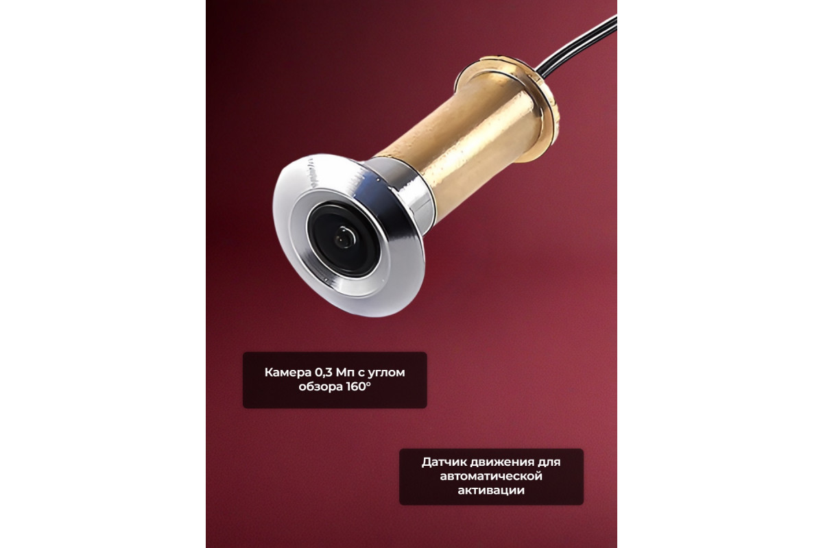 Особенности беспроводного глазка в дверь с видеокамерой "iHome-4" (бронза): система видеонаблюдения с HD камерой и 7-дюймовым дисплеем; имеет встроенный модуль Wi-Fi + позволяет установить SIM-карту; может удаленно "общаться" с владельце..