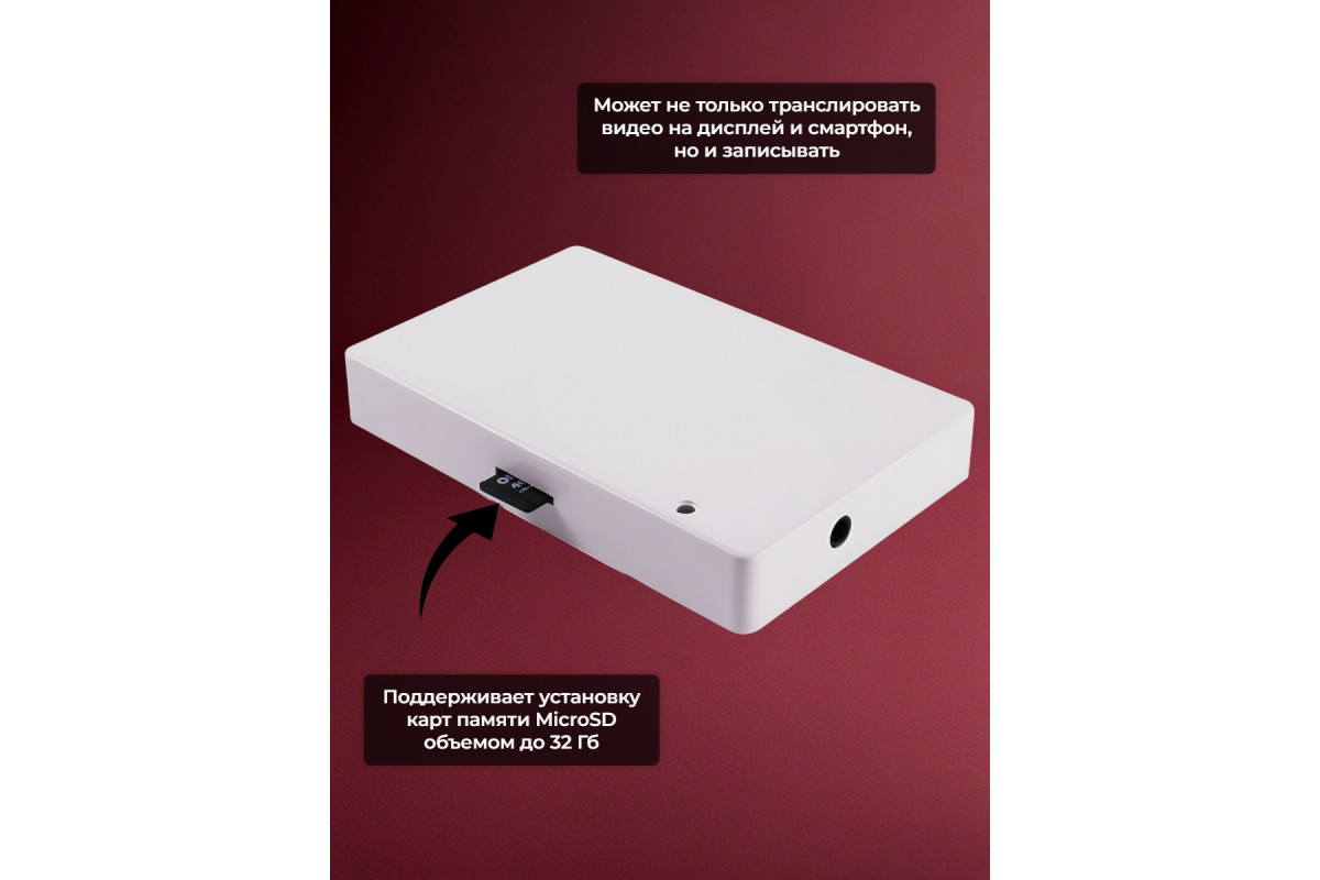 - Поддержка карт памяти microSD — у модуля Wi-Fi имеется слот для установки внешней карты памяти MicroSD объемом до 32 Гб. Карта памяти приобретается отдельно. В памяти устройства может храниться до 84 часов видеороликов.